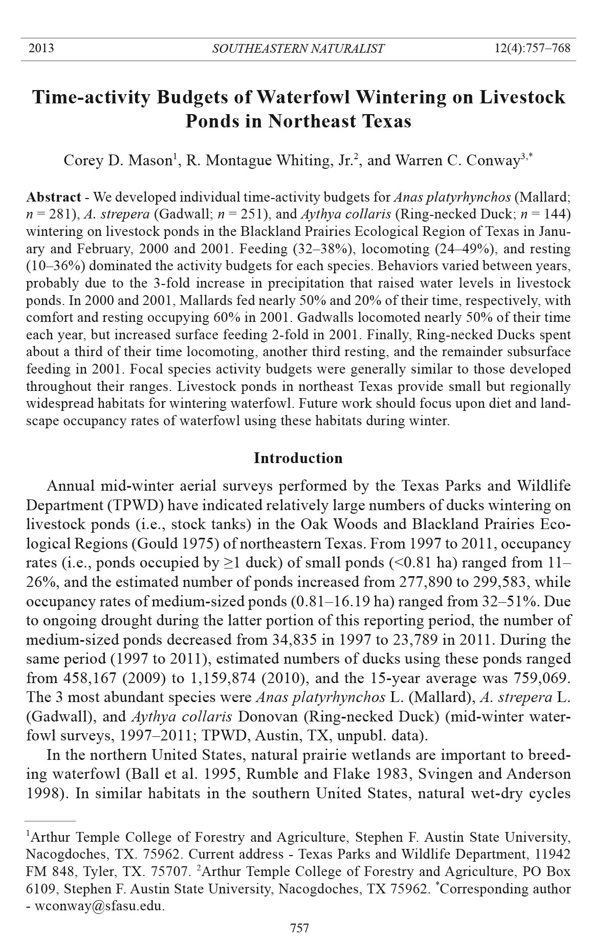 Corey D. Mason1, R. Montague Whiting, Jr.2, and Warren C. Conway3,*