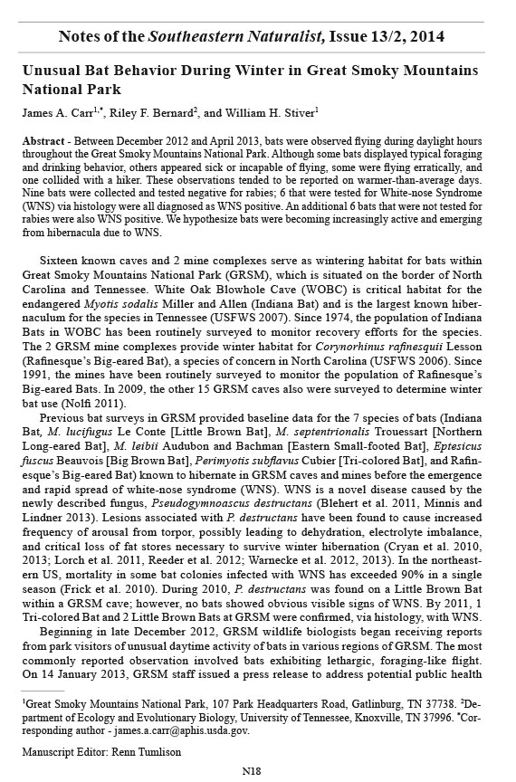 Since the discovery of WNS within the GRSM cave and mine complex, biologists expected