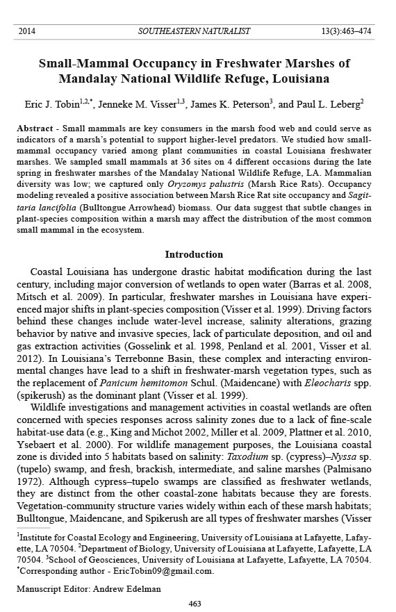 Abstract - Small mammals are key consumers in the marsh food web and could serve as