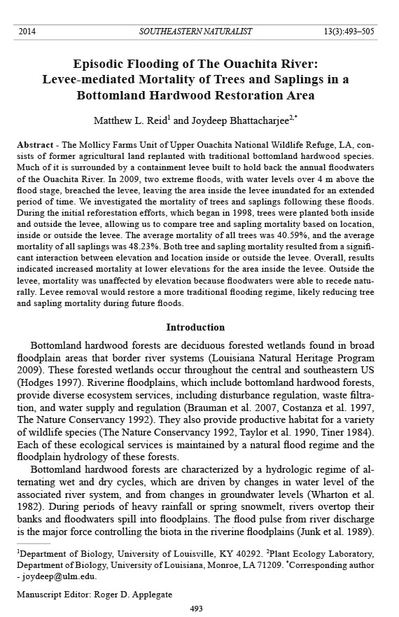Reid, M.L. 2013. A quarter century of plant succession in a bottomland hardwood forest in