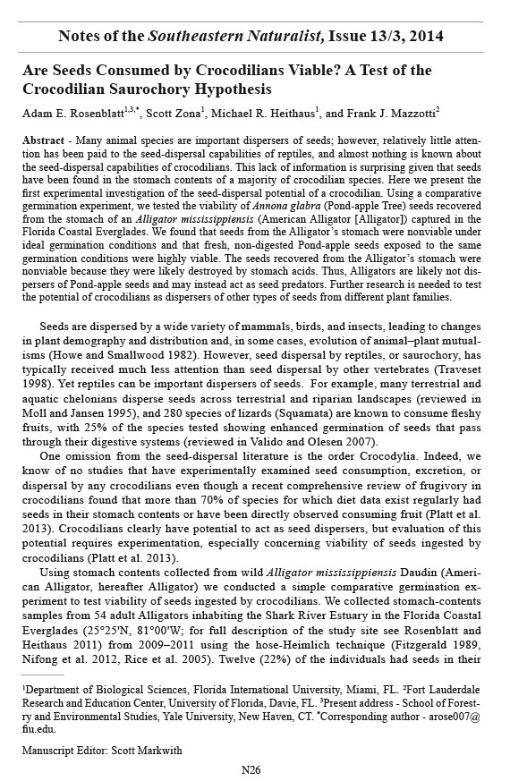 2013). Crocodilians clearly have potential to act as seed dispersers, but evaluation of this