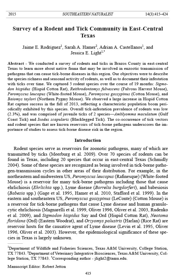 Abstract - We conducted a survey of rodents and ticks in Brazos County in east-central