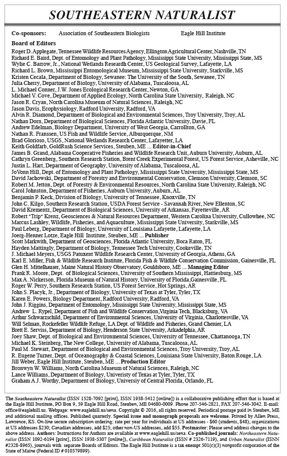Southeastern Naturalist, Volume 15, Issue 3 (2016)