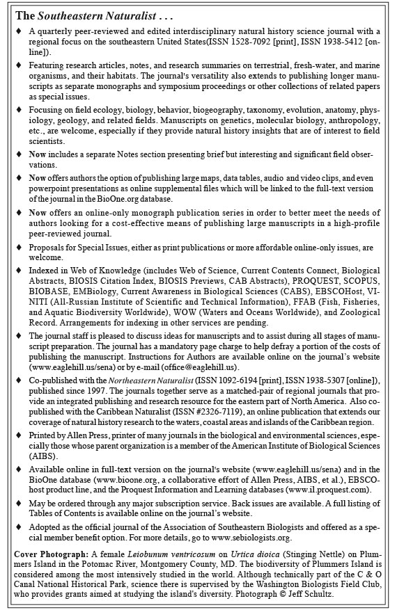 Southeastern Naturalist, Volume 15, Issue 4 (2016)