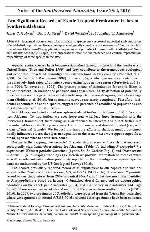in southern Alabama—Pterygoplichthys disjunctivus x pardalis (Amazon Sailfin Catfish) and Oreochromis
