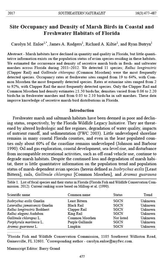 in Florida and estimate the occurrence and density of focal marsh-bird species