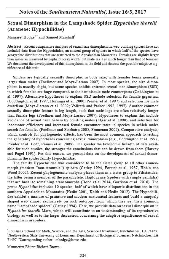name “lampshade spiders” (Catley 1994). Here, we provide data on sexual dimorphism in