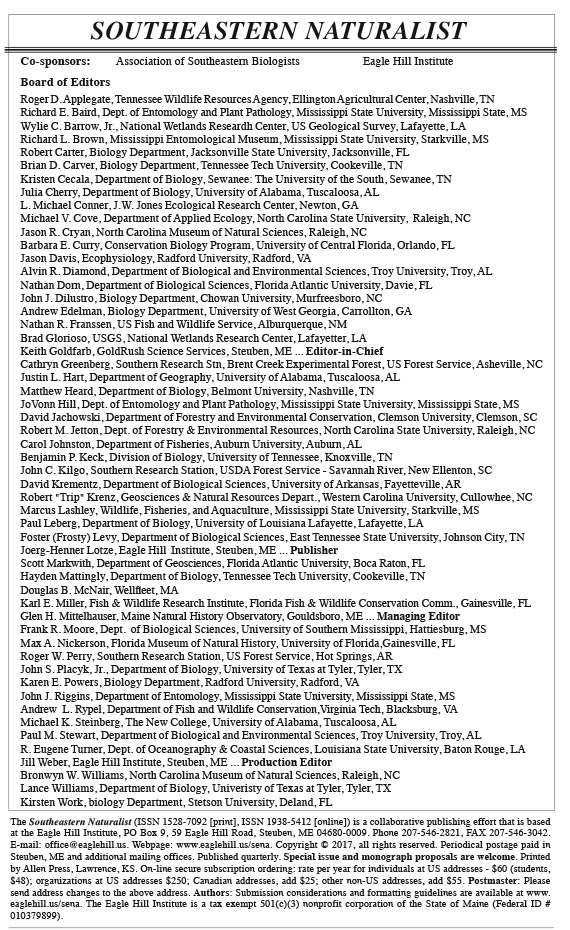 Southeastern Naturalist, Volume 16, Issue 4 (2017)