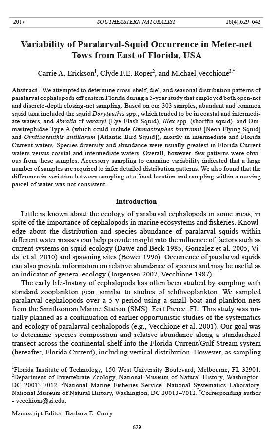 Roper, C.F.E., A. Gutierrez, and M. Vecchione. 2015. Paralarval octopods of the Florida