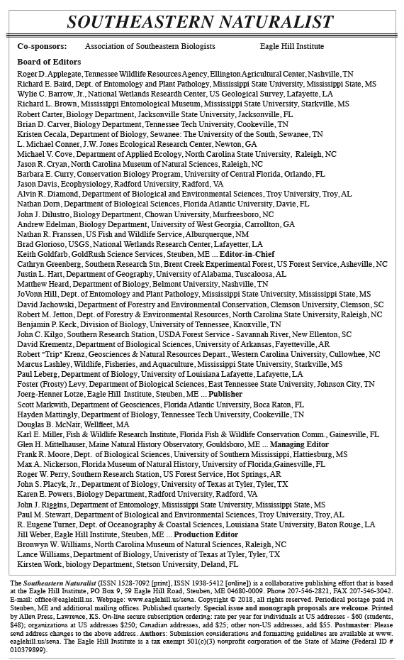 Southeastern Naturalist, Volume 17, Issue 3 (2018)