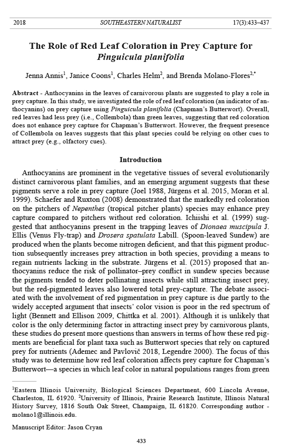 Annis, J.M. 2016. Seeing red in a sea of green: Anthocyanin production in a carnivorous