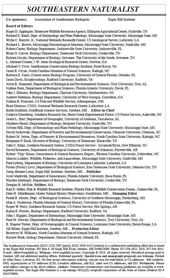 Southeastern Naturalist, Volume 17, Issue 4 (2018)