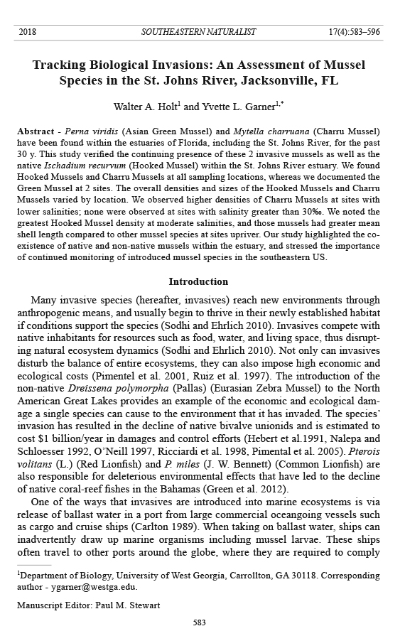 native Ischadium recurvum (Hooked Mussel) within the St. Johns River estuary. We found