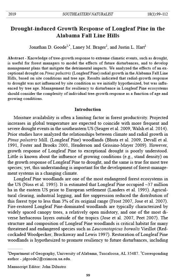 growth response of Longleaf Pine to exceptional drought is poorly understood.