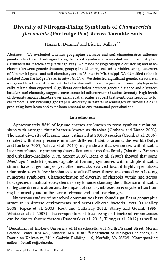 study, we tested 2 hypotheses: (1) nodulating rhizobia of Partridge Pea are geographically