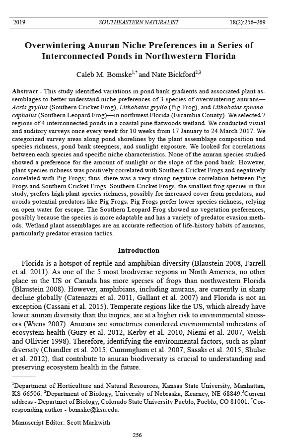 Holbrook, J.D., and N.J. Dorn. 2016. Fish reduce anuran abundance and decrease herpetofaunal