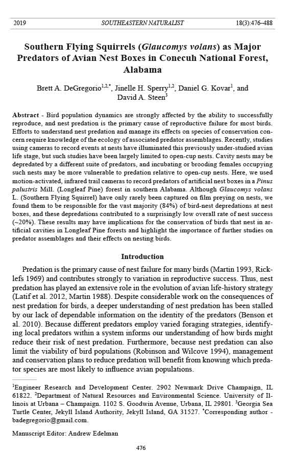 L. (Southern Flying Squirrel) have only rarely been captured on film preying on nests, we