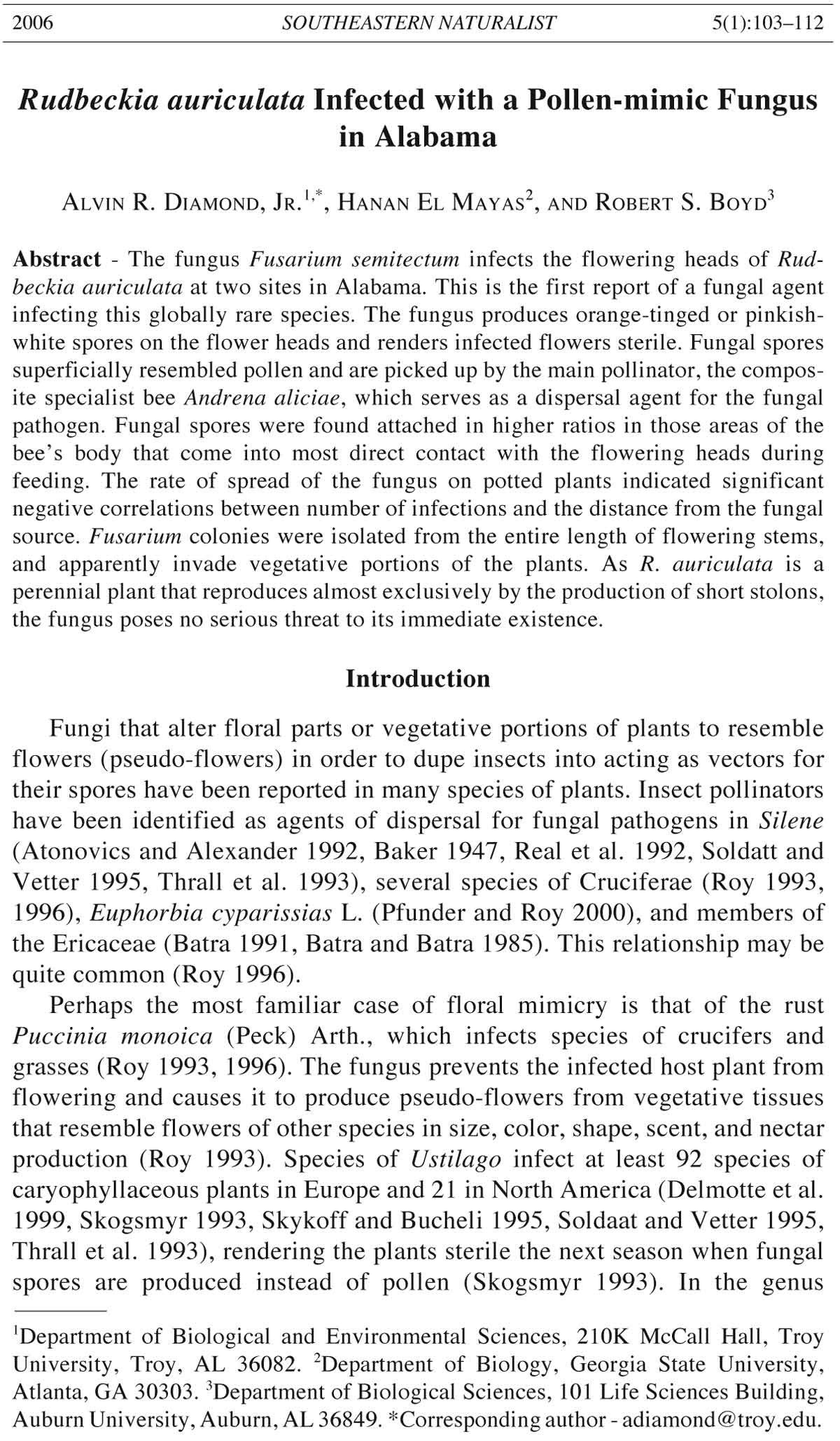 Abstract - The fungus Fusarium semitectum infects the flowering heads of Rudbeckia