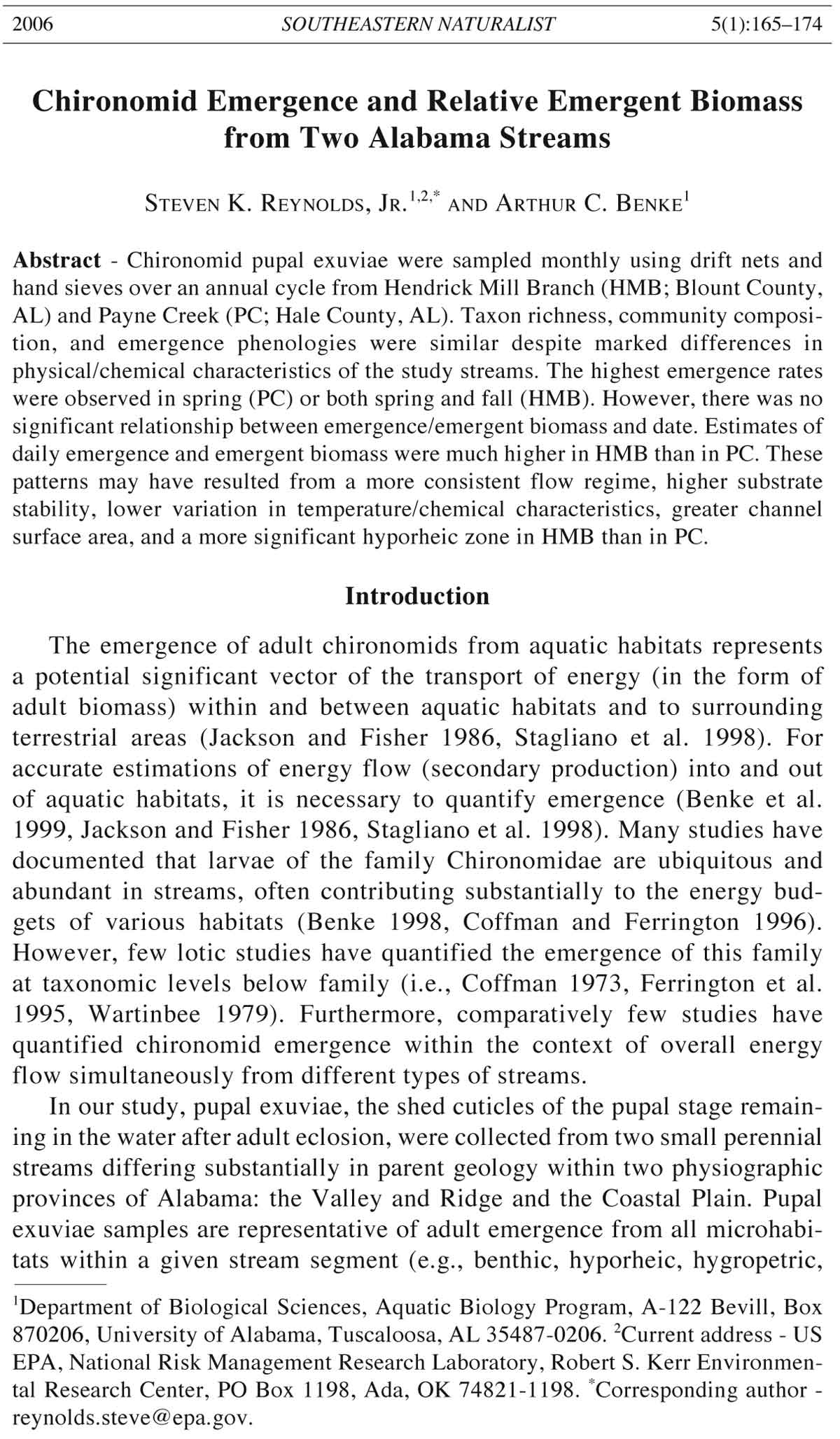 STEVEN K. REYNOLDS, JR.1,2,* AND ARTHUR C. BENKE1