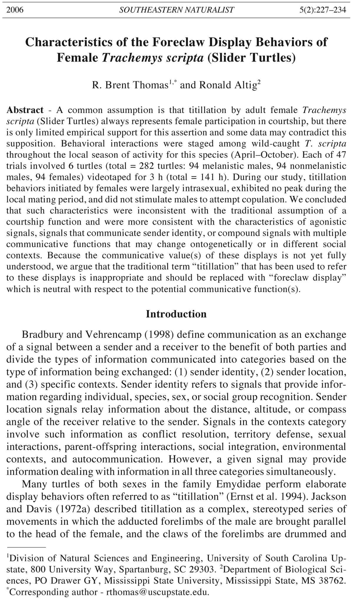 Abstract - A common assumption is that titillation by adult female Trachemys