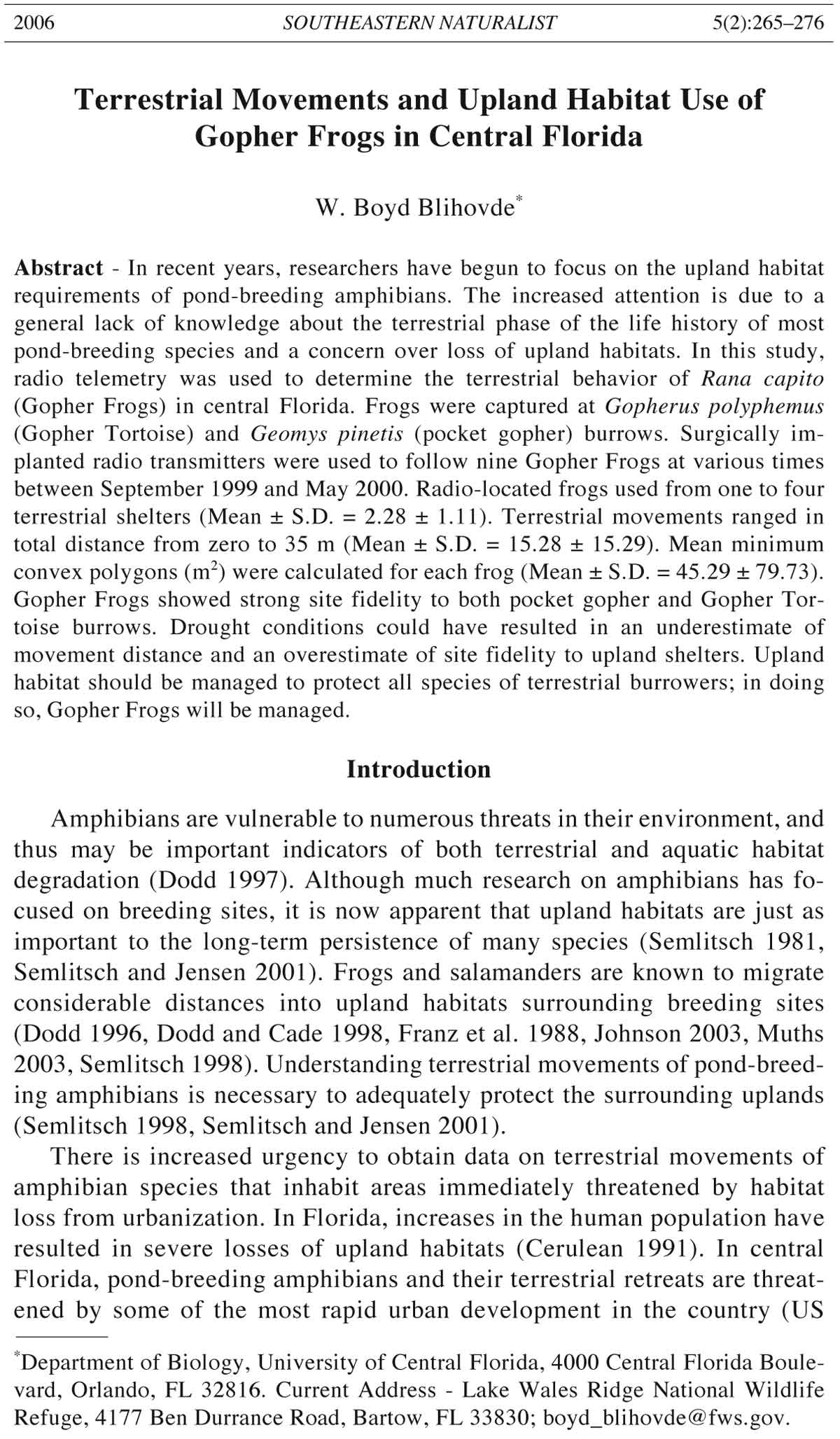of Gopher Frogs in central Florida using radio telemetry. This study