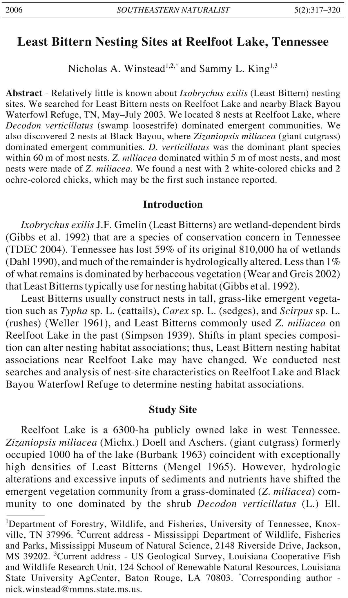 sites. We searched for Least Bittern nests on Reelfoot Lake and nearby Black Bayou