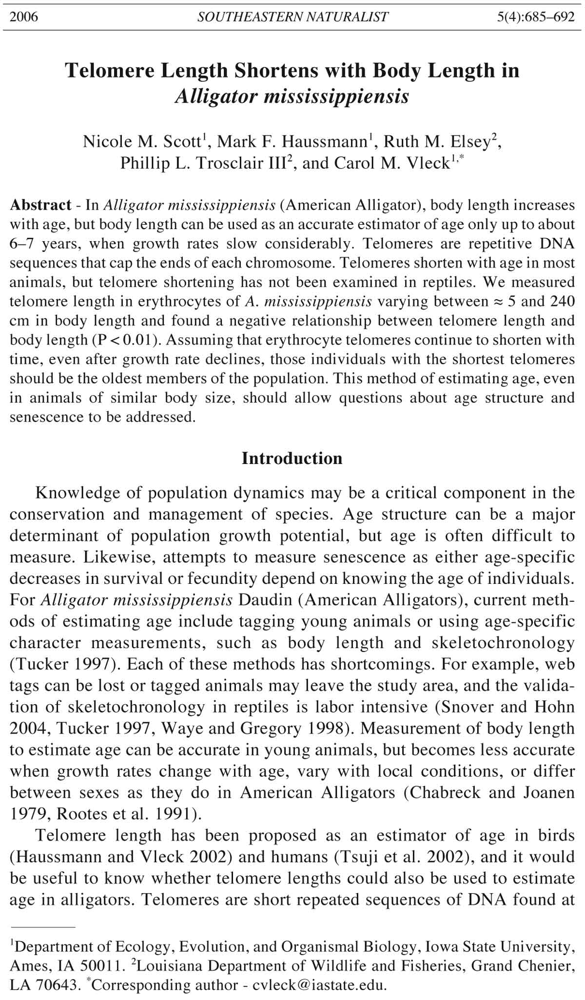 Haussmann, M.F., and C.M. Vleck. 2002. Telomere length provides a new technique