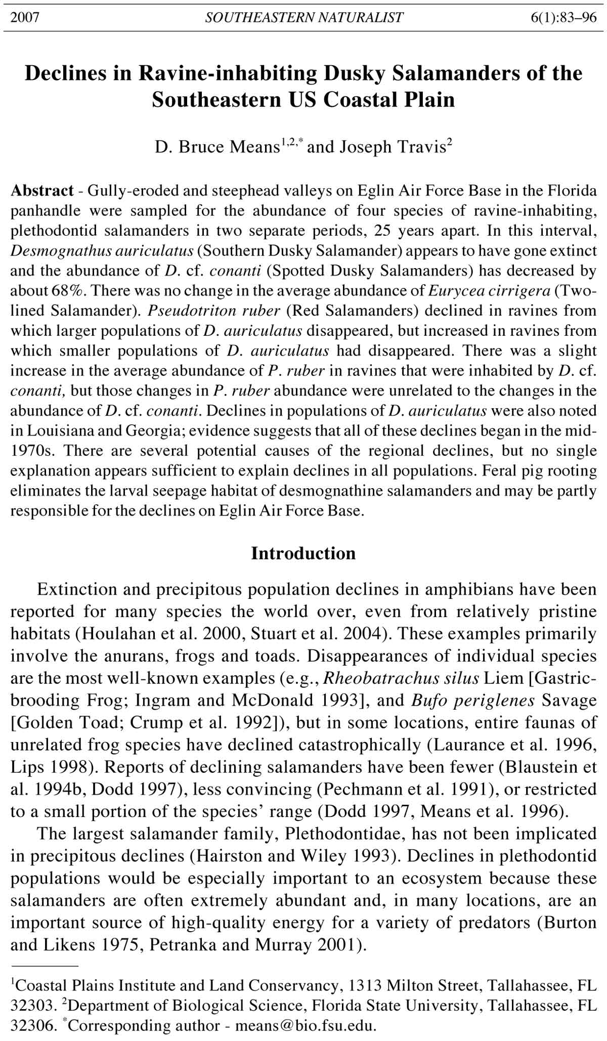 Means, D.B. 1974. The status of Desmognathus brimleyorum Stejneger and an analysis
