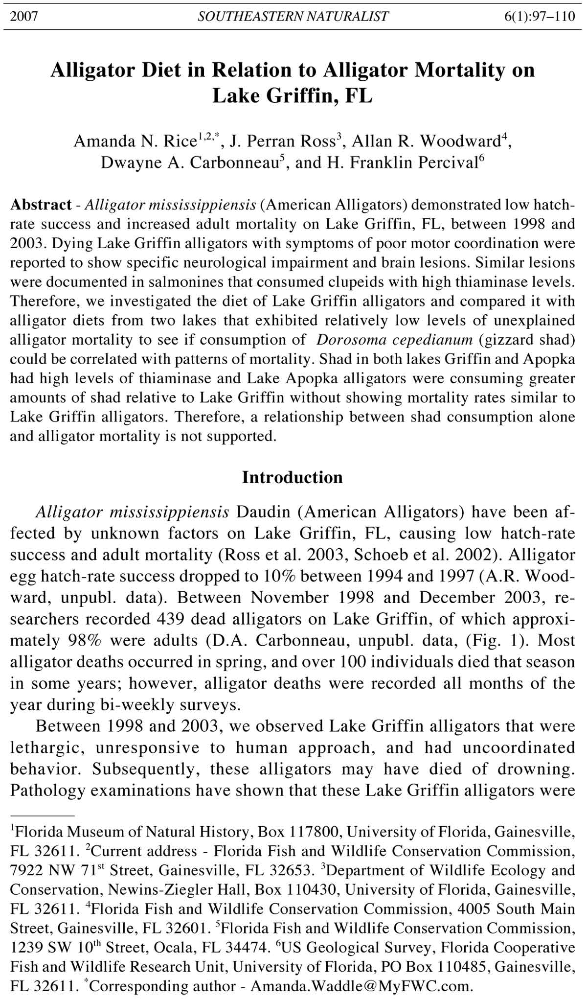 2007 A.N. Rice, J.P. Ross, A.R. Woodward, D.A. Carbonneau, and H.F. Percival 99