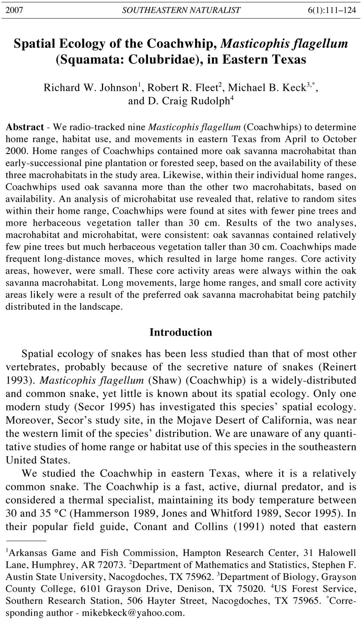 112 Southeastern Naturalist Vol. 6, No. 1