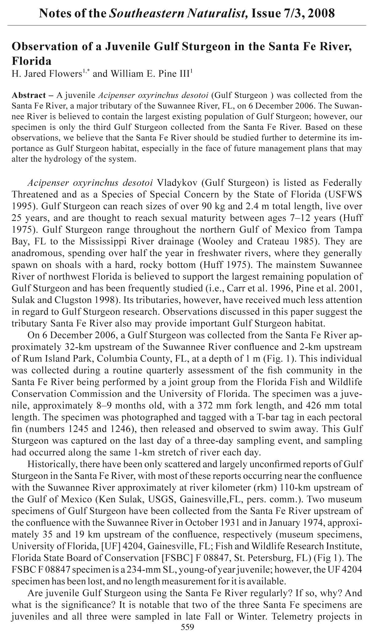 tributaries, based on specimen FSBC F 08847. If juvenile Gulf Sturgeon are using the