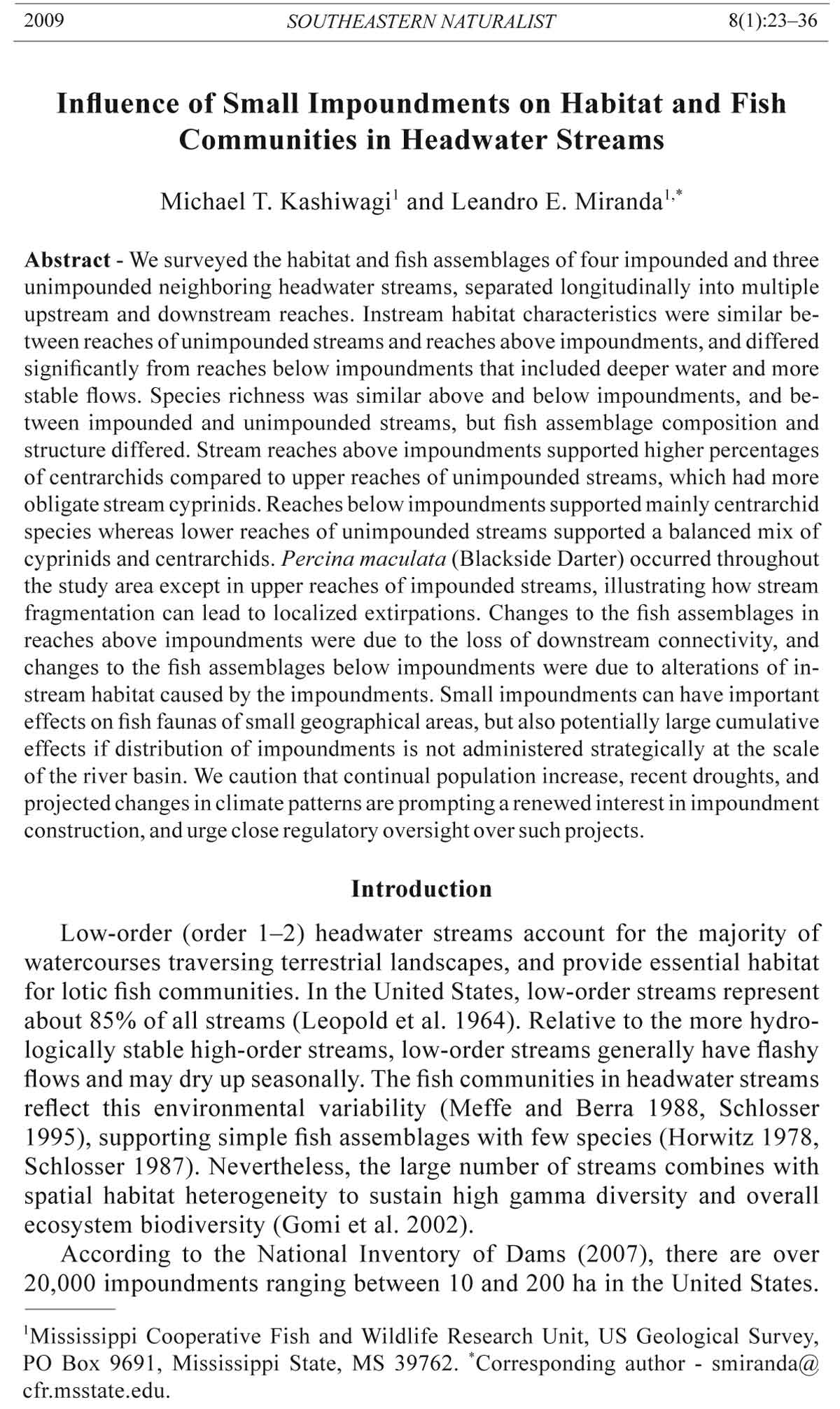 Abstract - We surveyed the habitat and fish assemblages of four impounded and three
