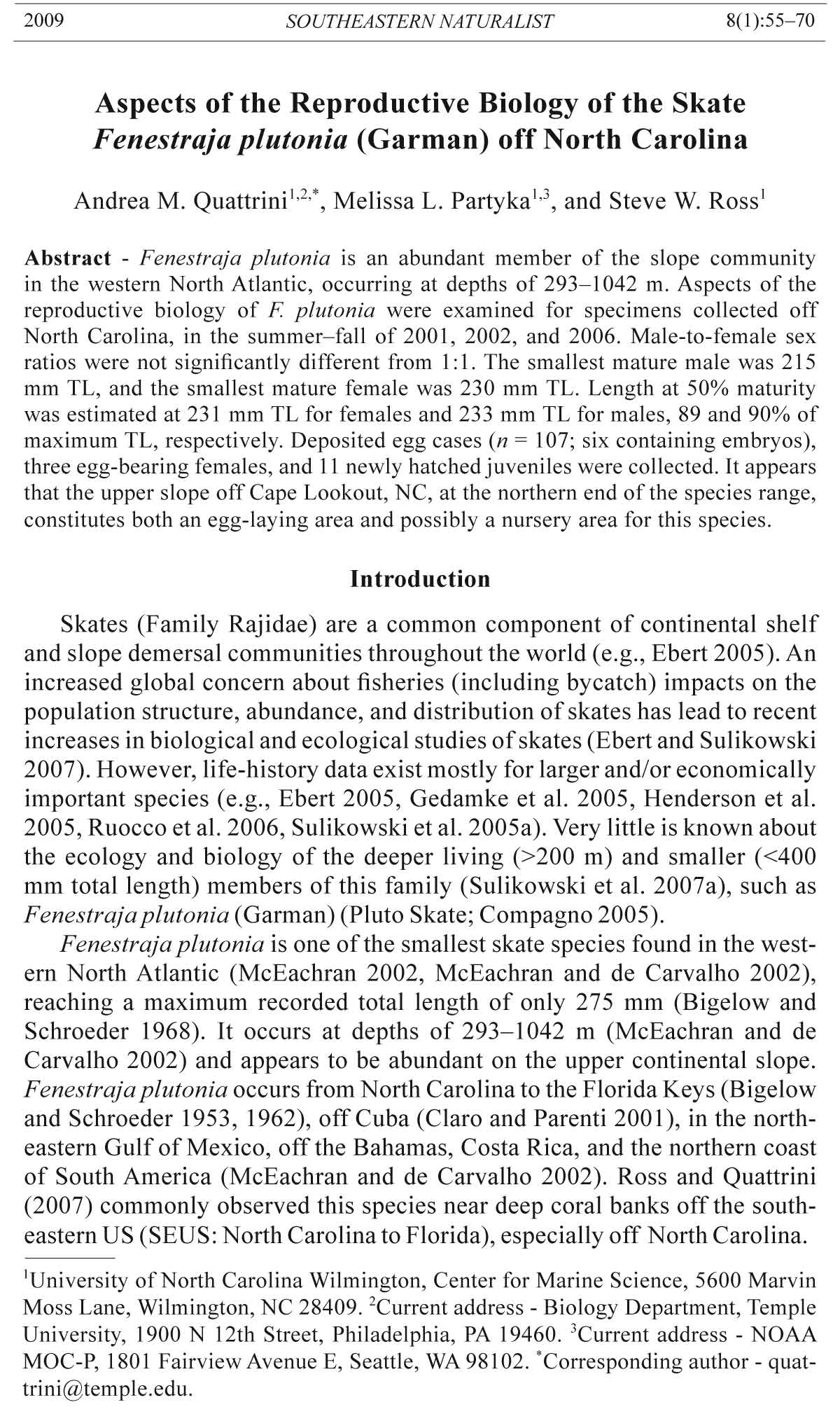 Abstract - Fenestraja plutonia is an abundant member of the slope community