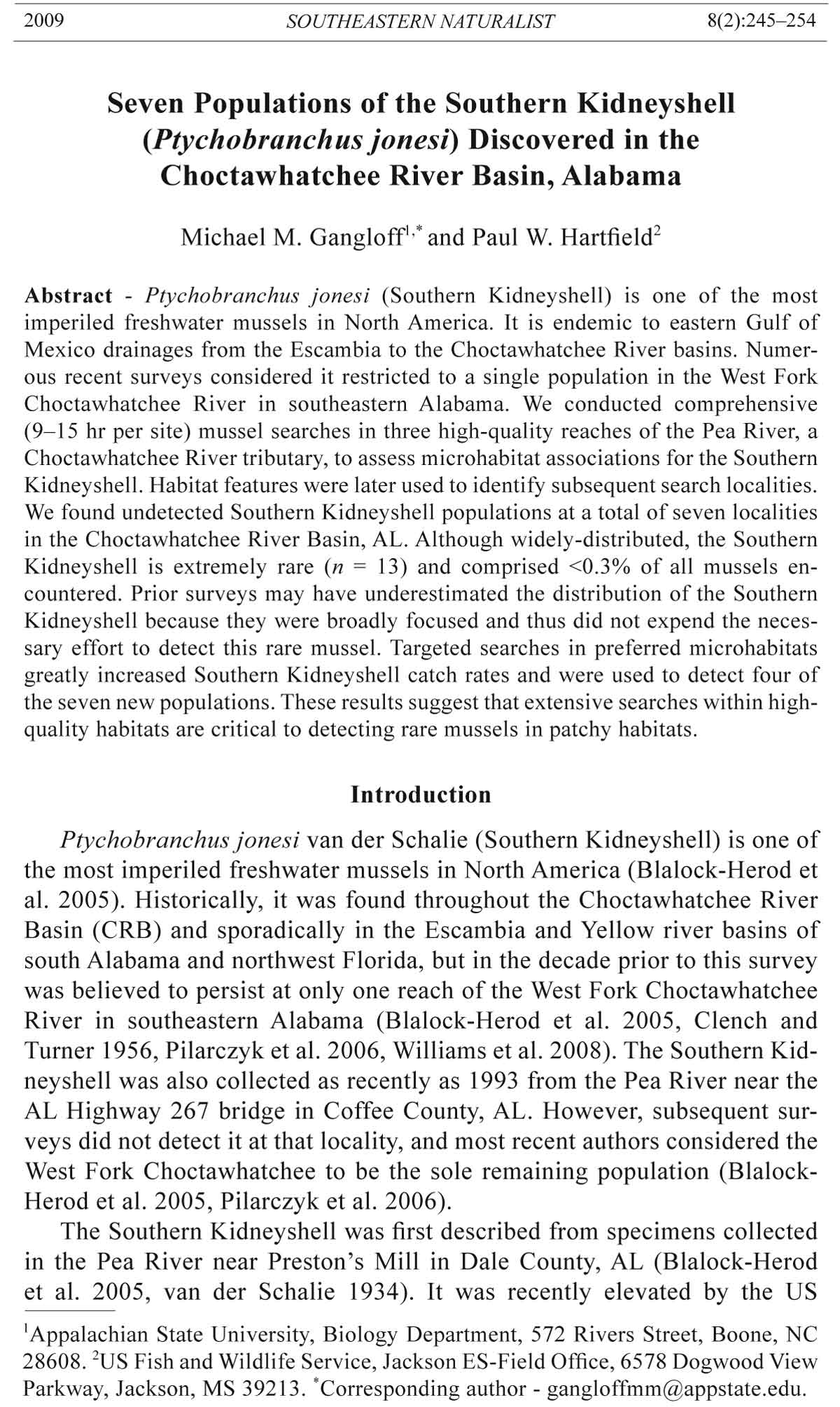 Southern Kidneyshell in the lower Pea and Choctawhatchee rivers. Ideally,