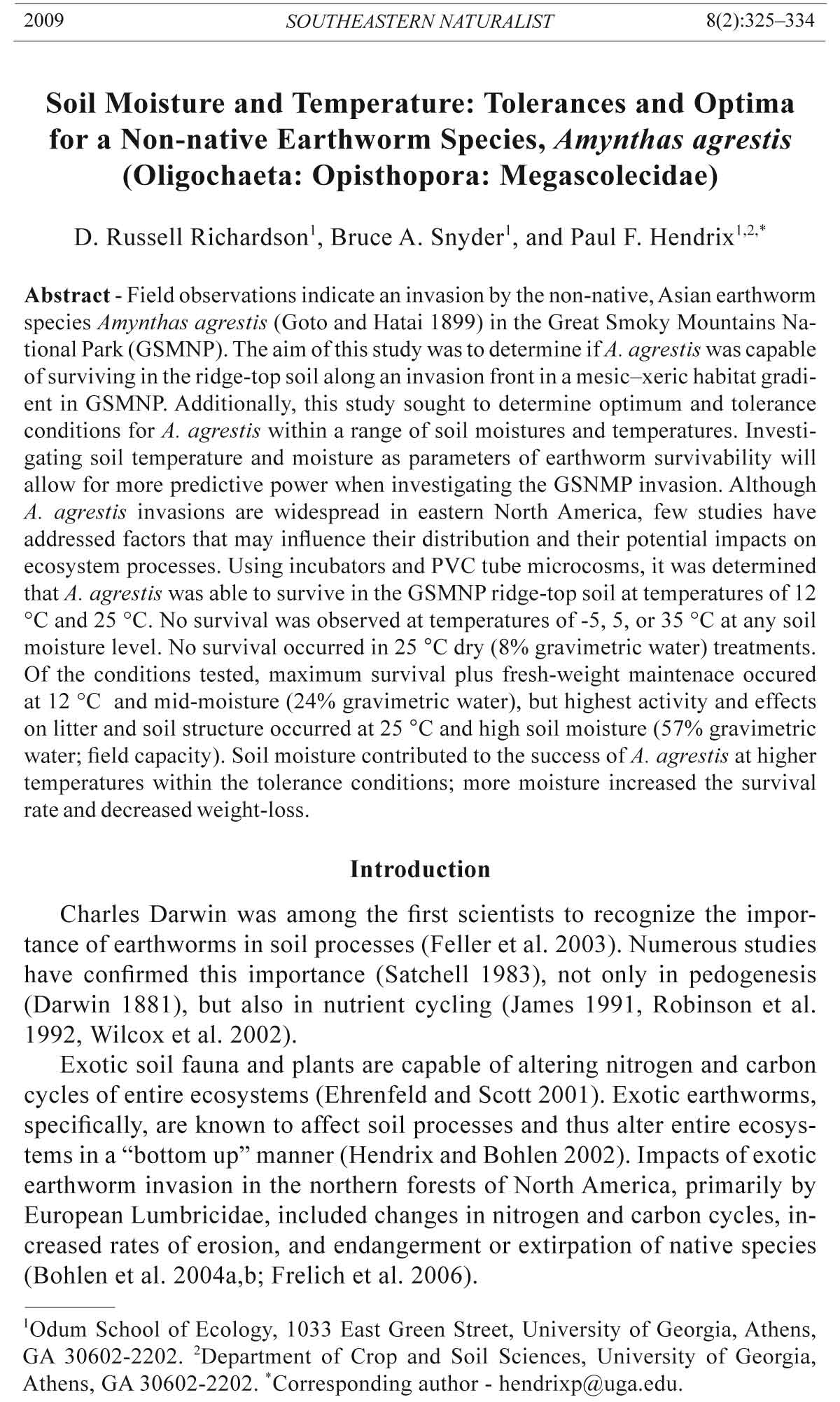 Athens, GA 30602-2202. *Corresponding author - hendrixp@uga.edu.