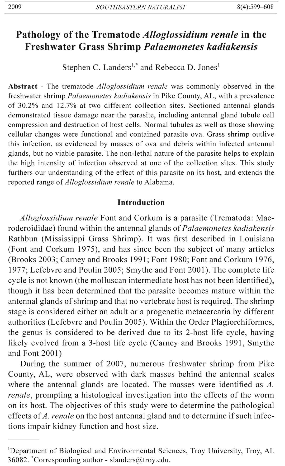 Southeastern Biologists: Jones, R.D., and S.C. Landers 2008. Morphological analysis