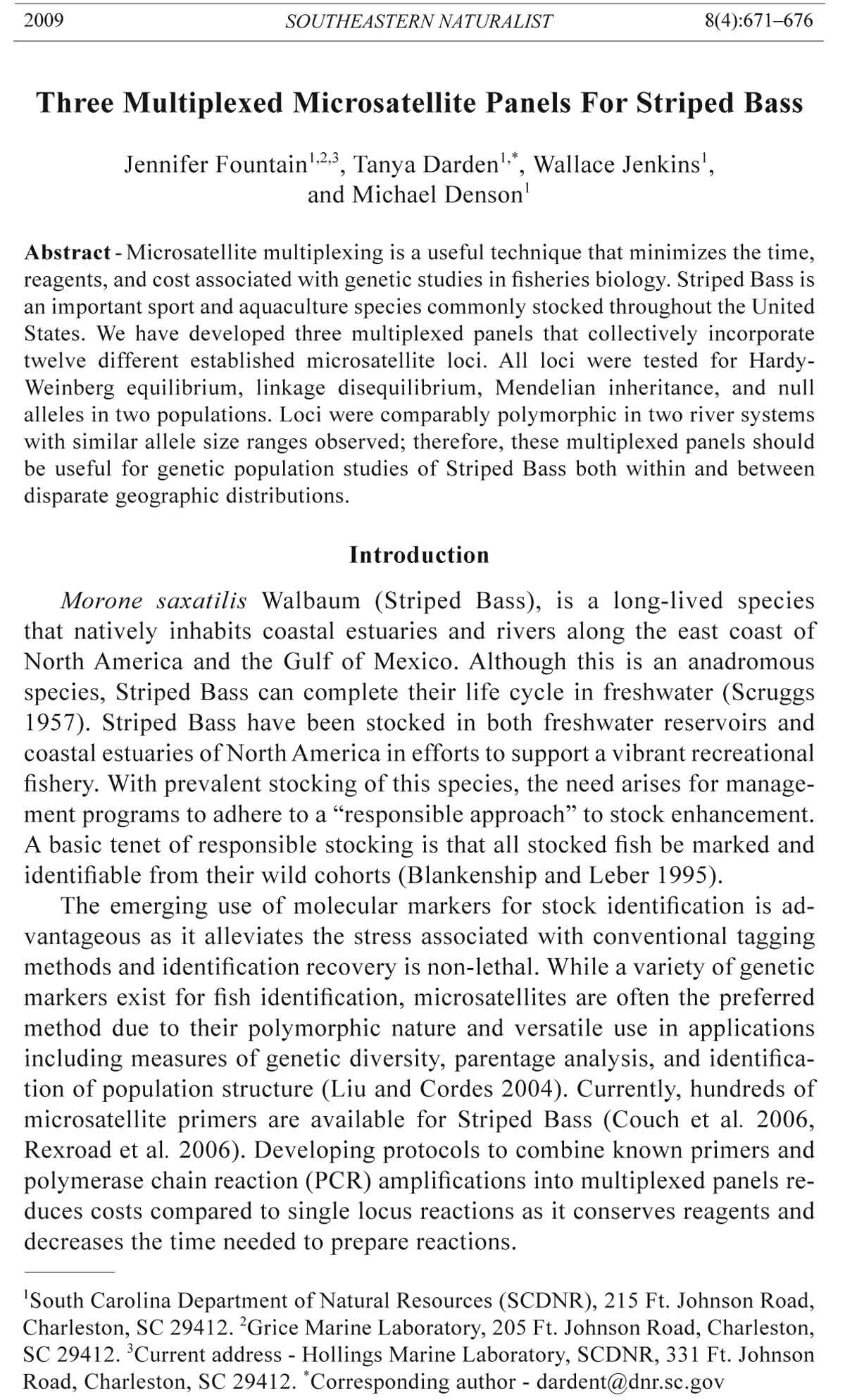 reagents, and cost associated with genetic studies in fisheries biology. Striped Bass is