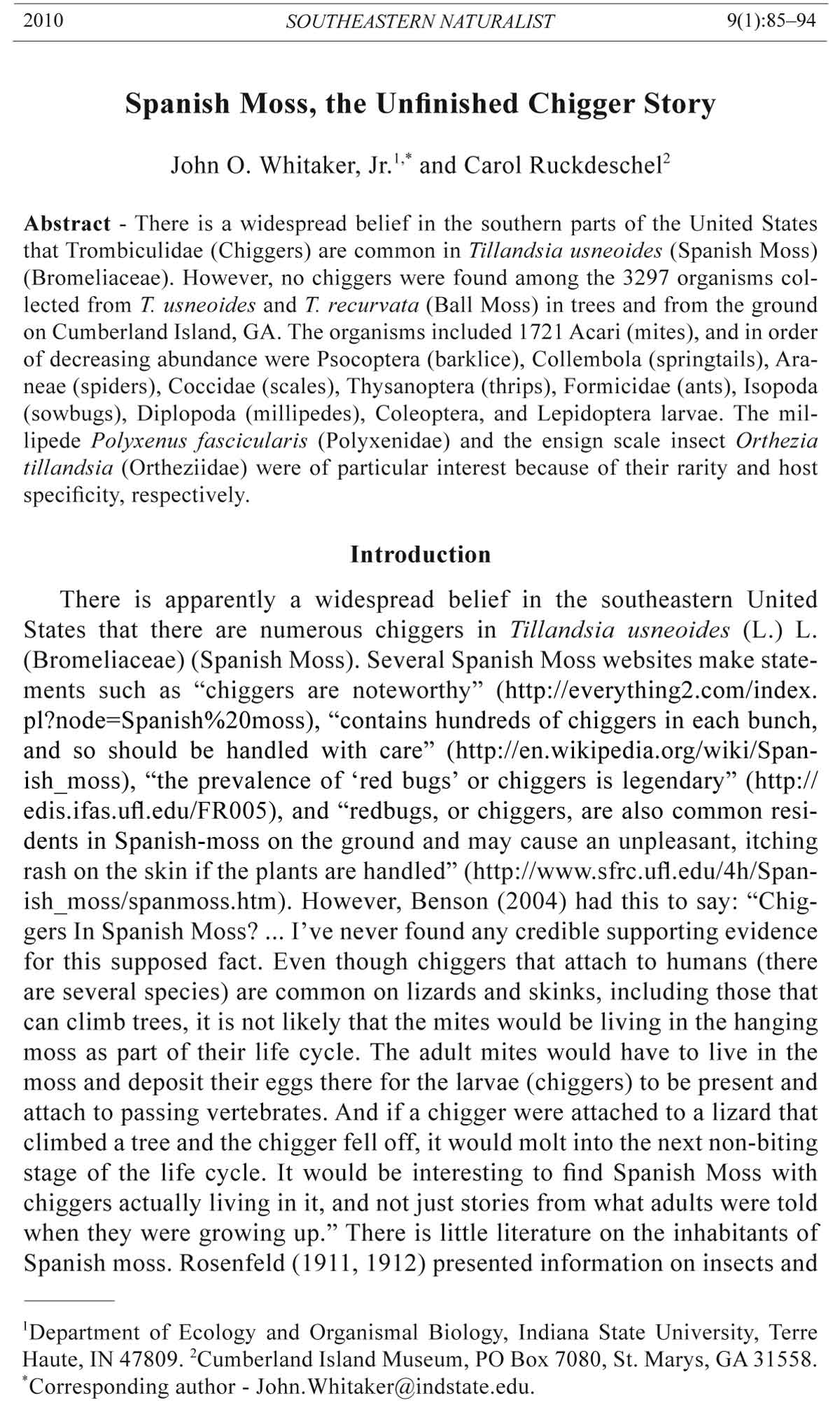 2010 SOUTHEASTERN NATURALIST 9(1):85–94
