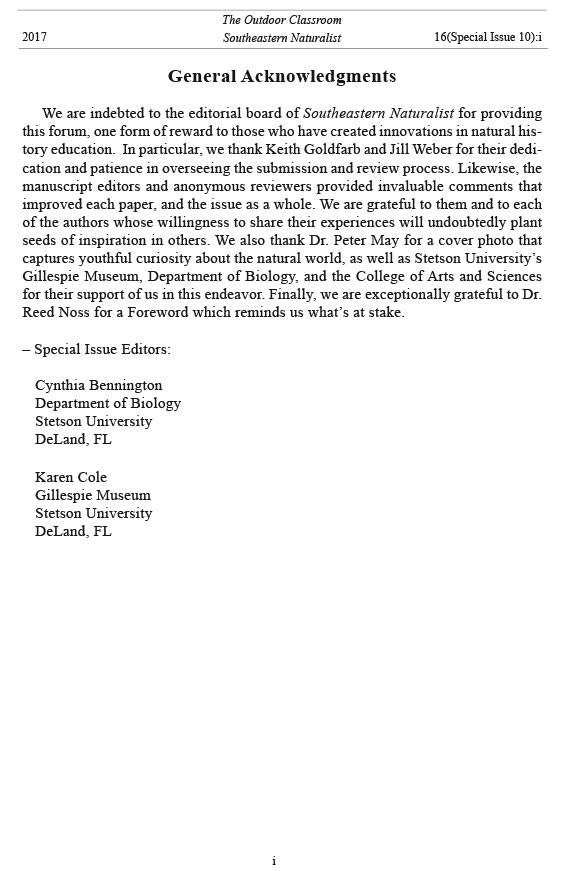 Southeastern Naturalist, Volume 16, Special Issue 10 (2017)