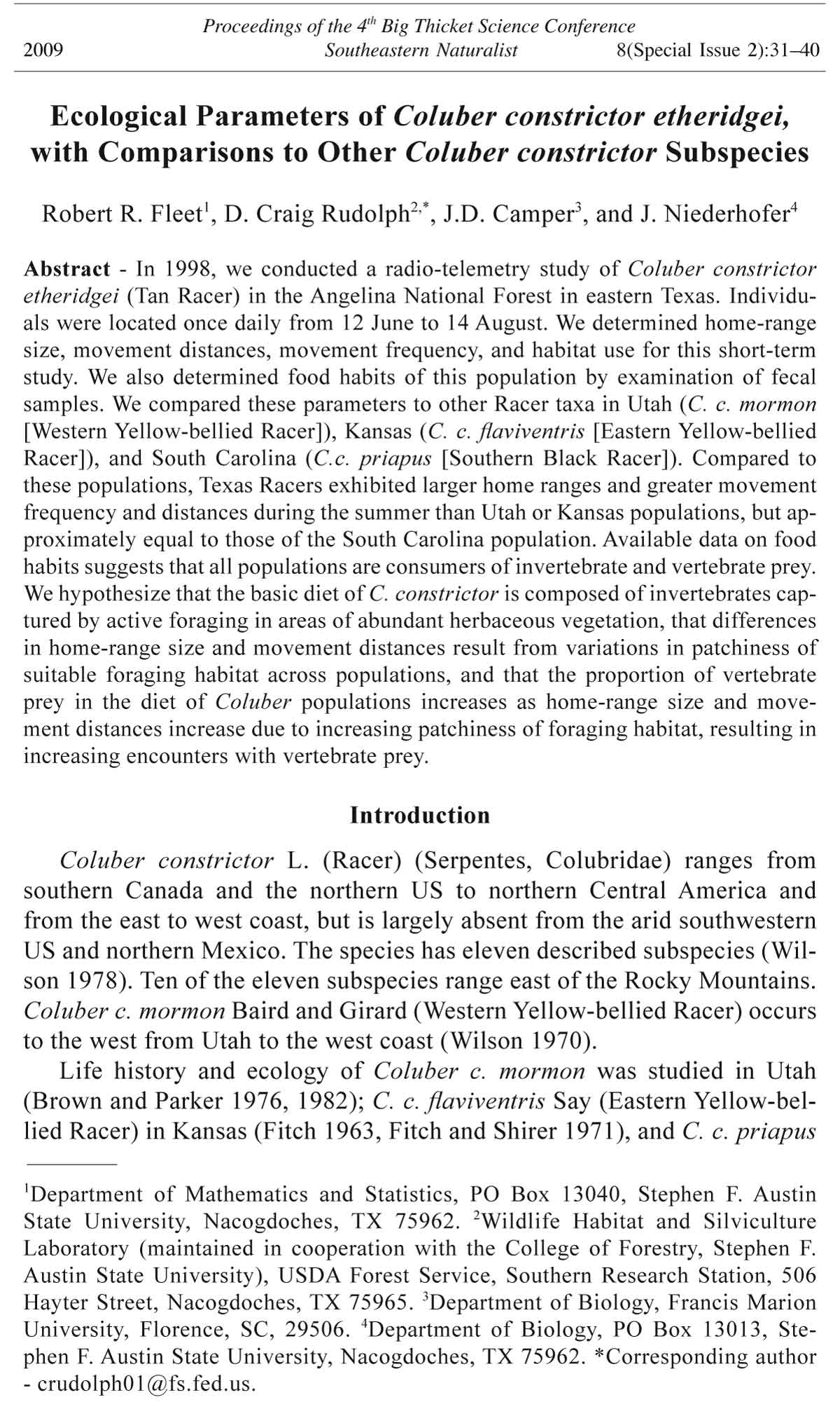 Robert R. Fleet1, D. Craig Rudolph2,*, J.D. Camper3, and J. Niederhofer4