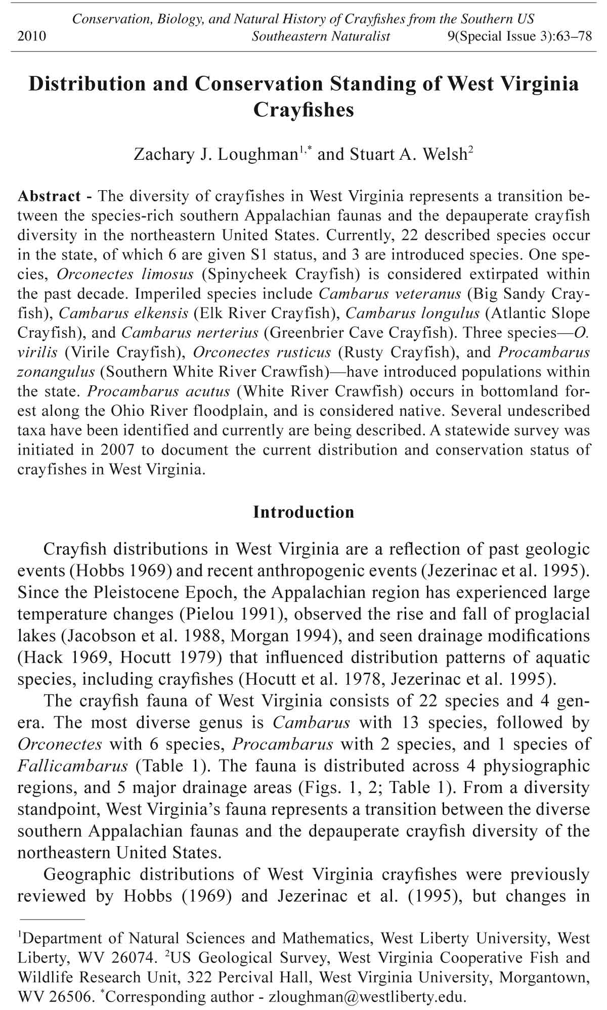 fauna. Since the Jezerinac et al. (1995) treatise on West Virginia's crayfish