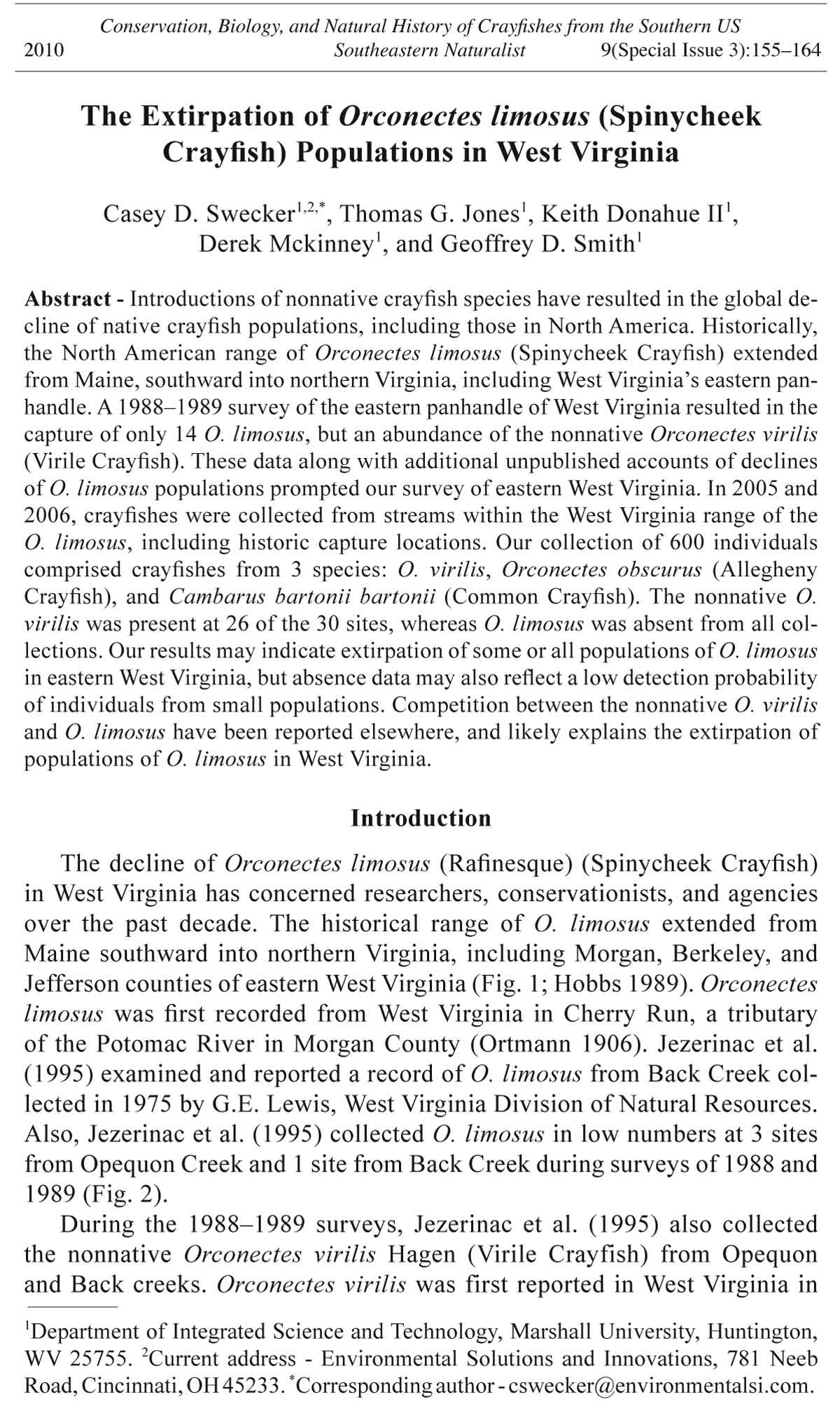 (Virile Crayfish). These data along with additional unpublished accounts of declines