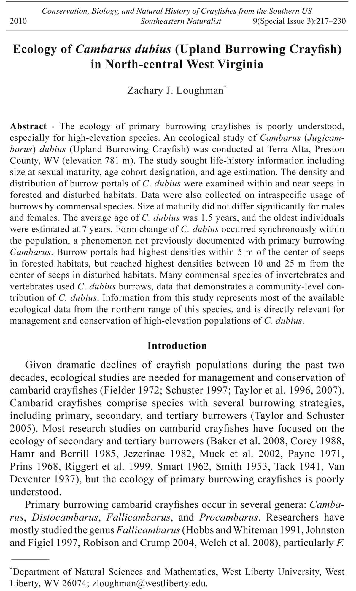 Abstract - The ecology of primary burrowing crayfishes is poorly understood,