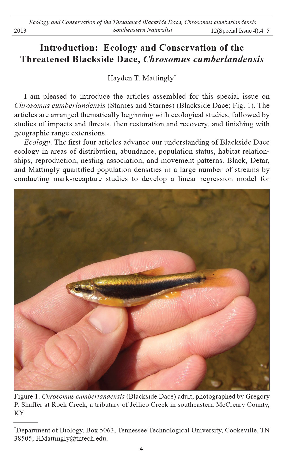 Chrosomus cumberlandensis (Starnes and Starnes) (Blackside Dace; Fig. 1). The