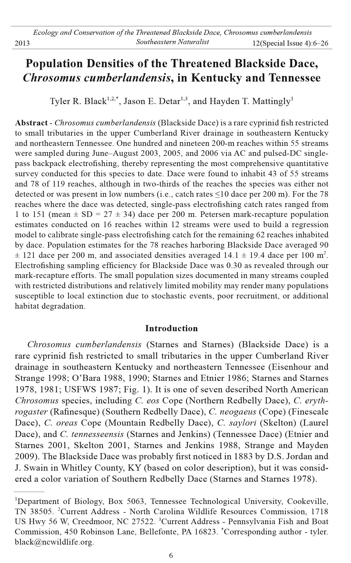 by Starnes (1981), who reported that Blackside Dace might have been extirpated