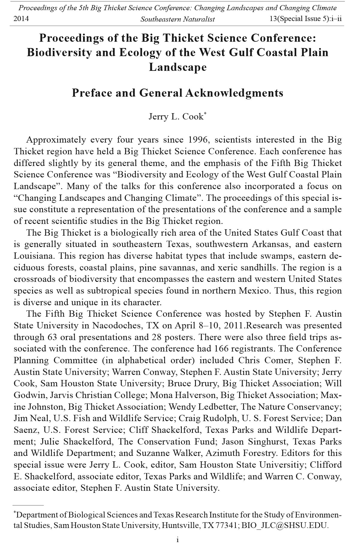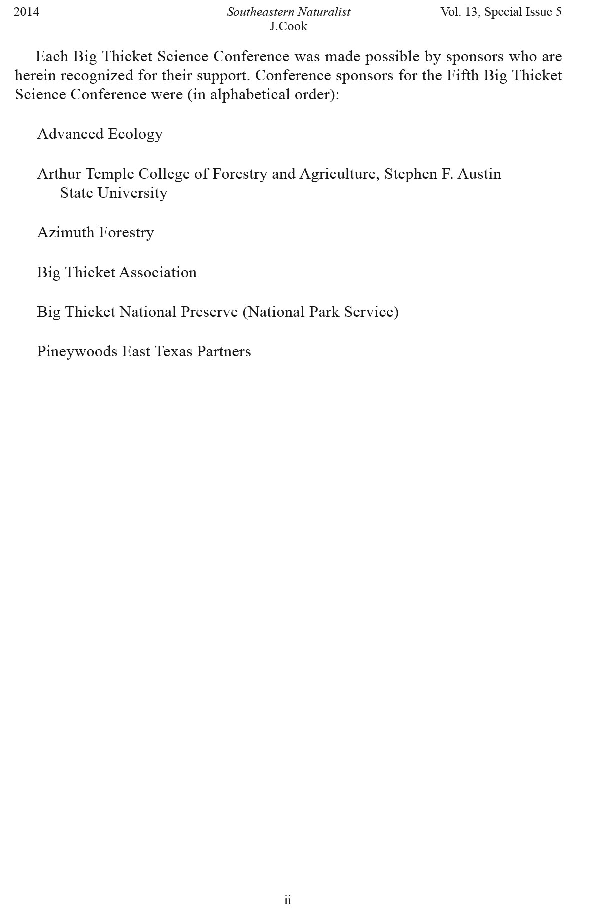 2014 Southeastern Naturalist 13(Special Issue 5):i–ii
