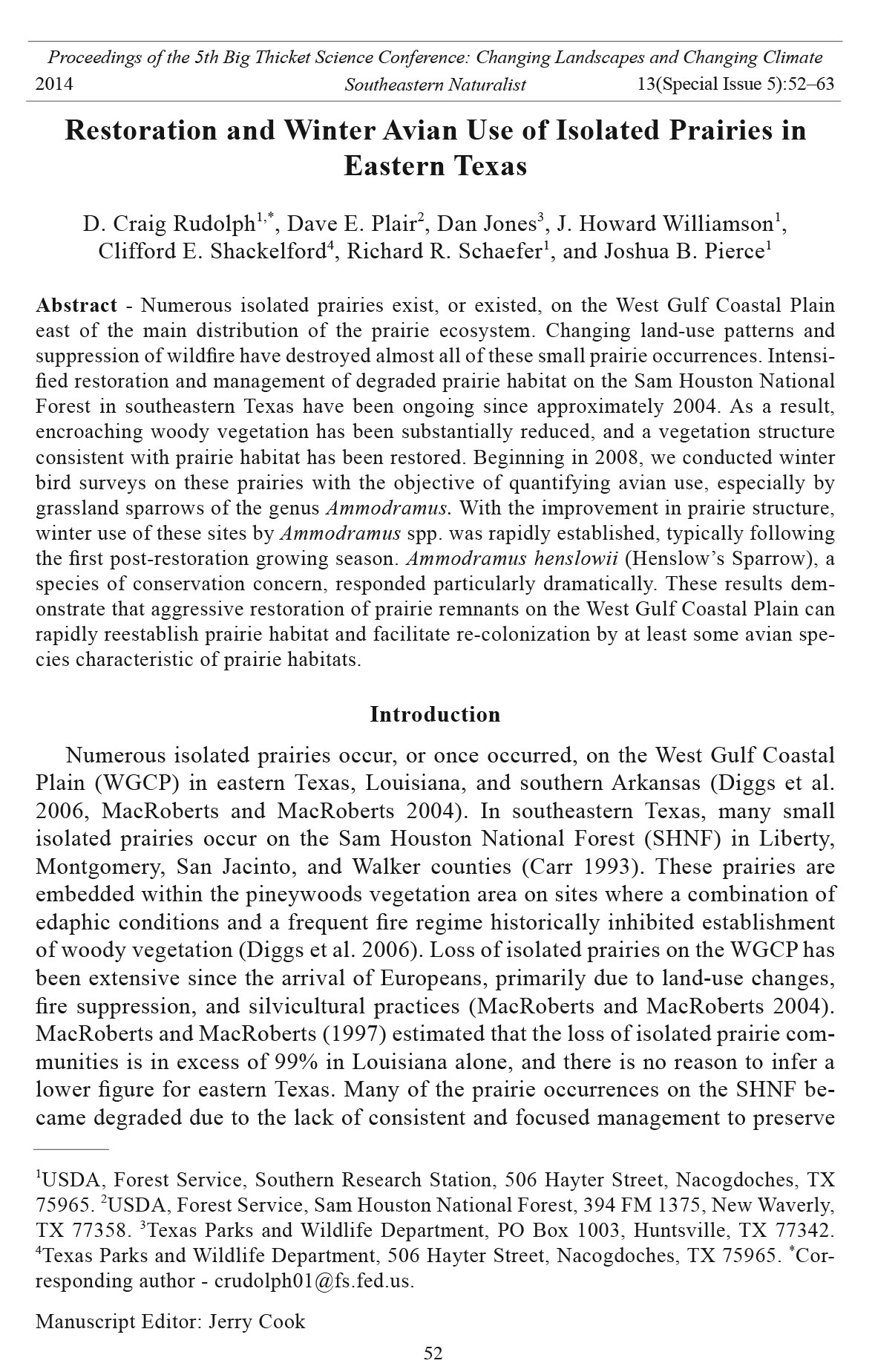 2014 Southeastern Naturalist 13(Special Issue 5):52–63