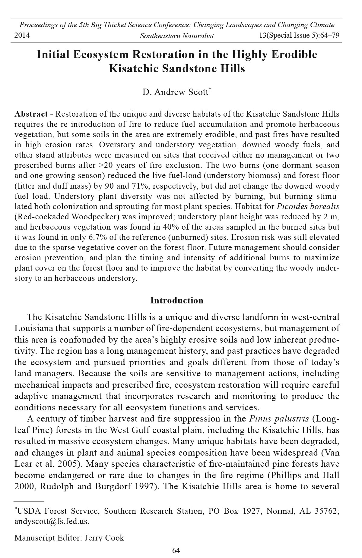 2014 Southeastern Naturalist 13(Special Issue 5):64–79