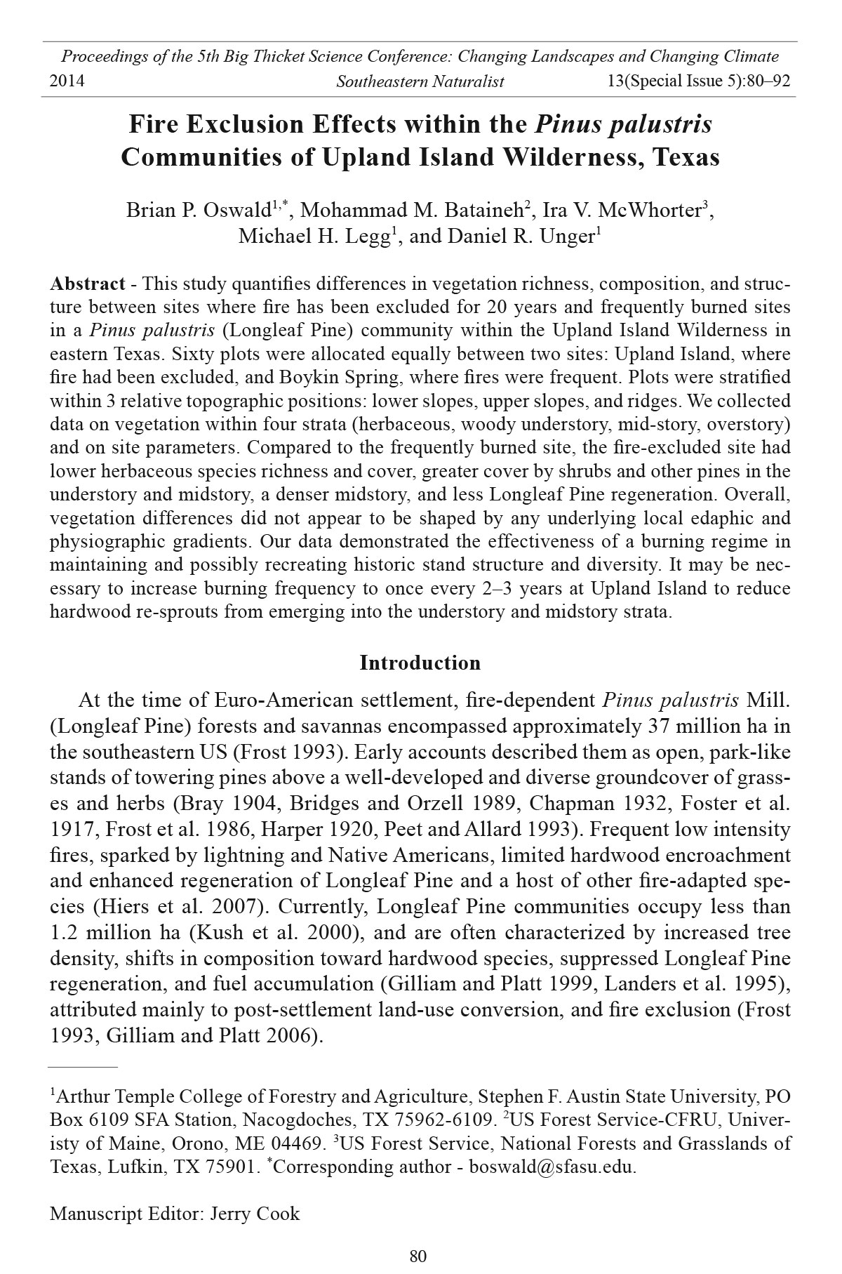 2014 Southeastern Naturalist 13(Special Issue 5):80–92