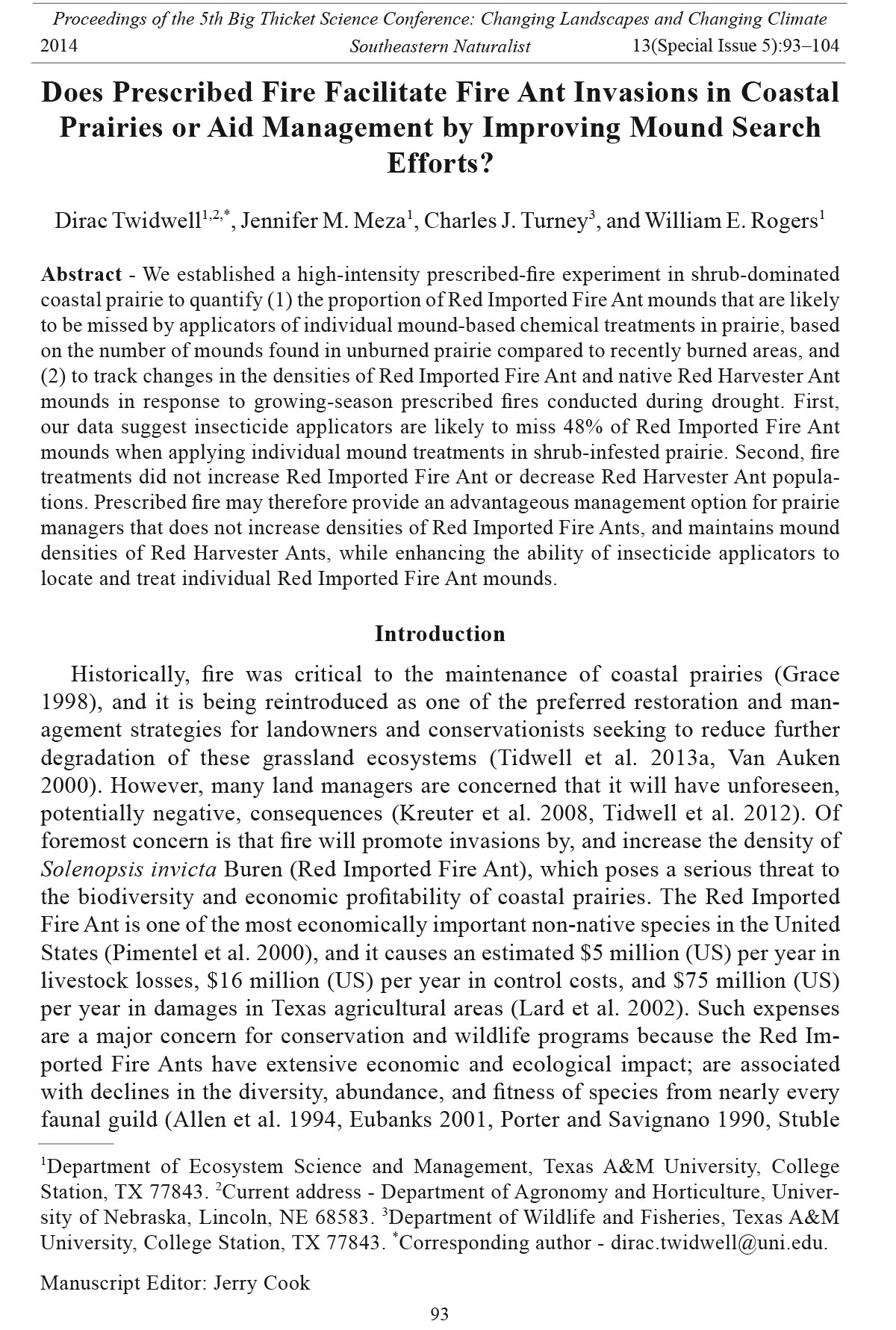 Does Prescribed Fire Facilitate Fire Ant Invasions in Coastal